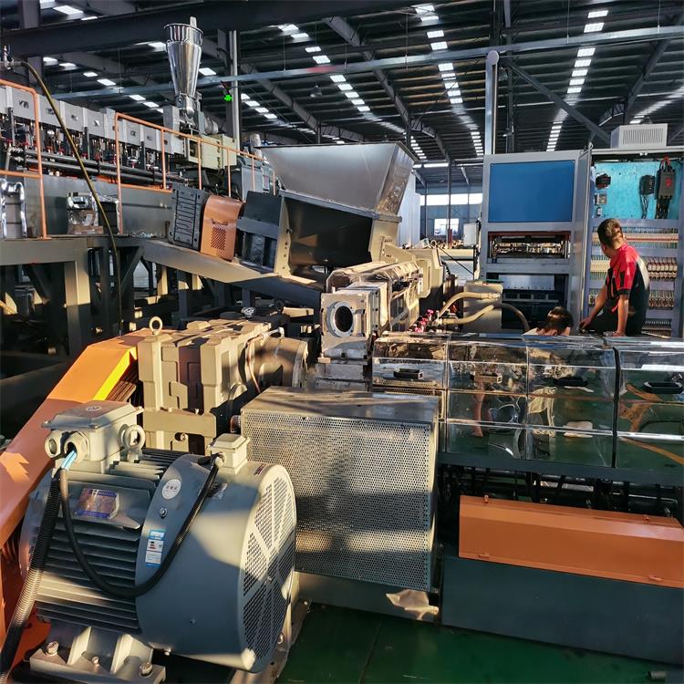 pvc電纜料造粒機分類_pvc造粒機,我司現(xiàn)場PVC電纜料造粒機、低煙無鹵造粒機、PE電纜料造粒機等都有現(xiàn)機,同時三號車間為代加工生產(chǎn)車間,有降解料造粒代加工、彈性體水下切造粒代加工 ,水沖造粒代加工等各種規(guī)格的生產(chǎn)代加工生產(chǎn)線,歡迎新老客戶現(xiàn)場參觀考察.